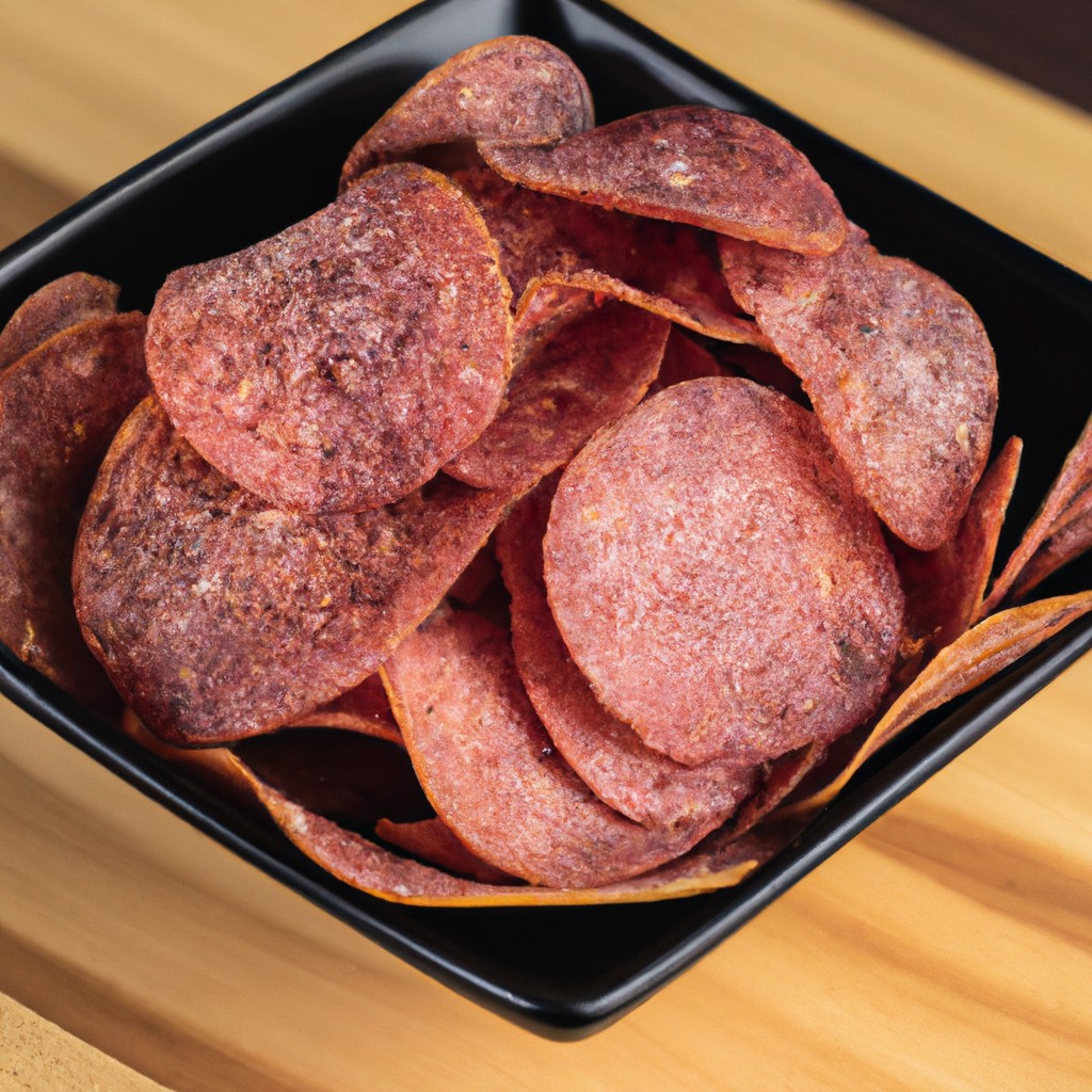 Salamechips são fatias finas de salame que são assadas na Airfryer até ficarem crocantes, criando um aperitivo delicioso e vegano.