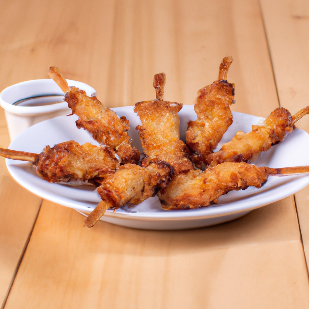 Qual é a origem dos espetinhos de frango empanados?