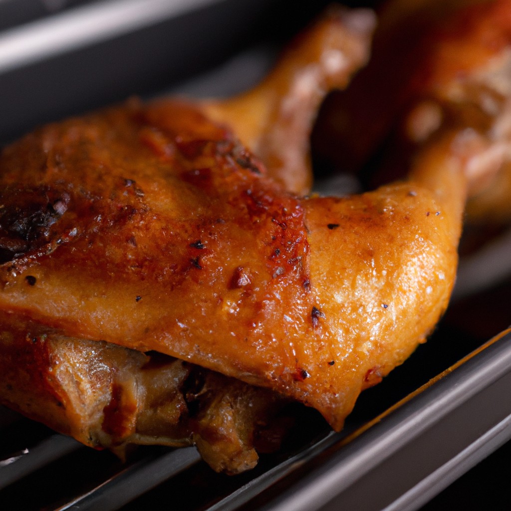 Para deixar o frango mais suculento, coloque um copo de água na bandeja da Airfryer durante o processo de assar.