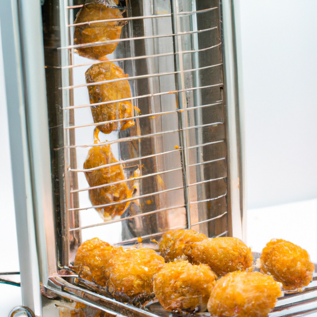 O quibe é assado na airfryer, o que reduz a quantidade de gordura em comparação com a fritura.