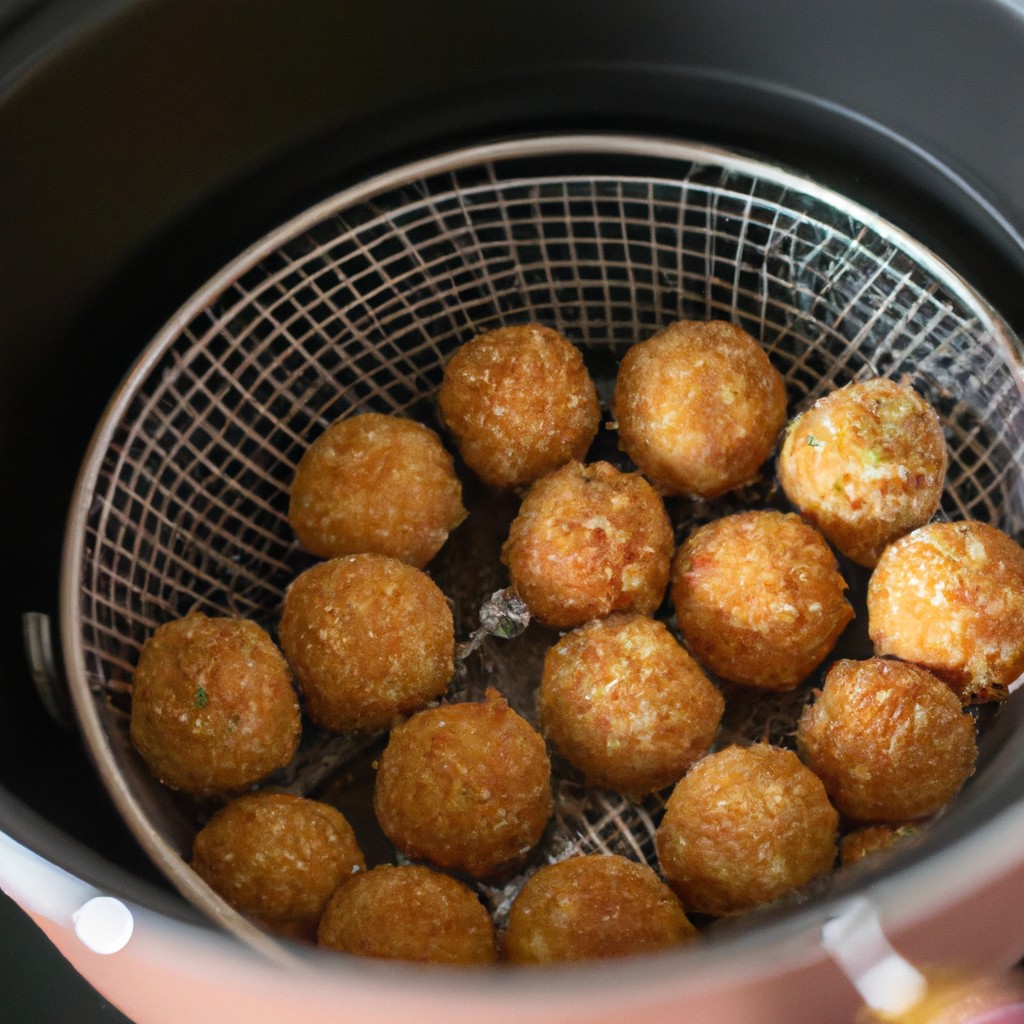 2. Com as mãos, modele a massa em pequenos bolinhos e coloque-os na airfryer previamente untada com óleo.